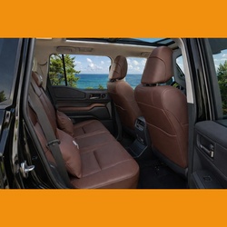 Elektriski regulējami sēdekļi ar atmiņas funkciju vadītājam, ventilāciju un apsildi visiem sēdekļiem, apsildāms stūres rats, ādas apdare un iebūvēts ledusskapis.