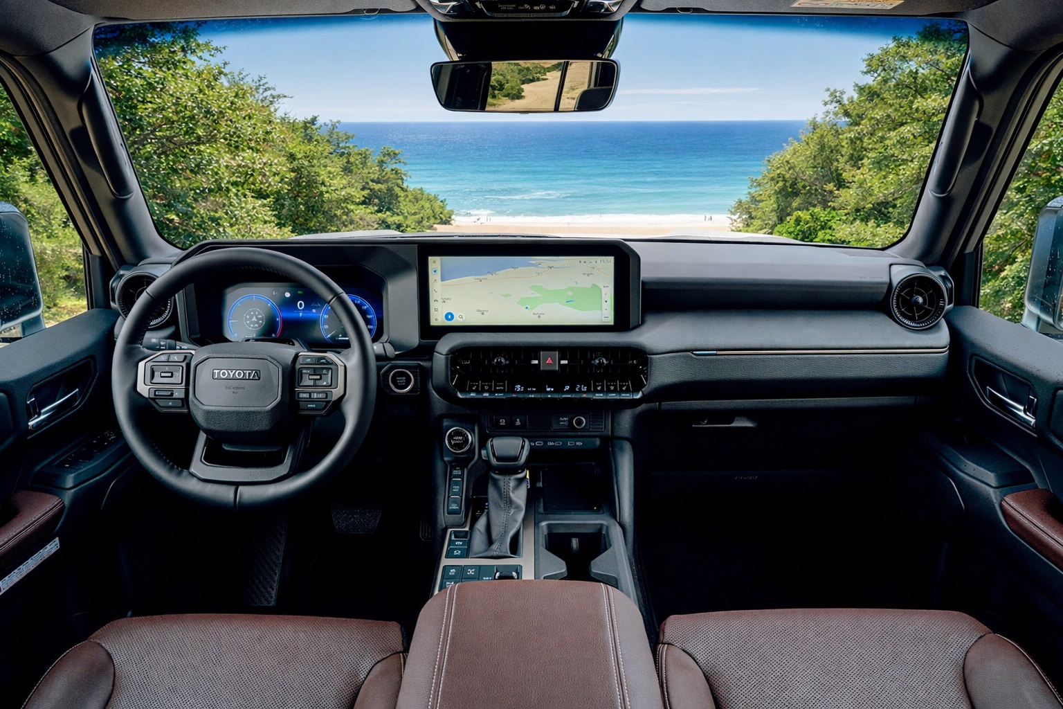 Pilns Toyota Safety Sense komplekts: adaptīvais kruīza kontrole, automātiskā bremzēšana, joslas uzturēšana, aklo zonu monitorings, vadītāja noguruma kontrole, Safe Exit Assist sistēma.